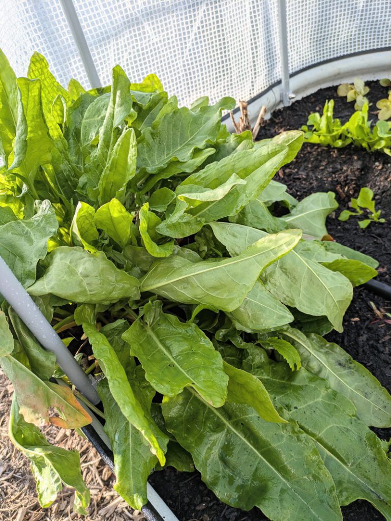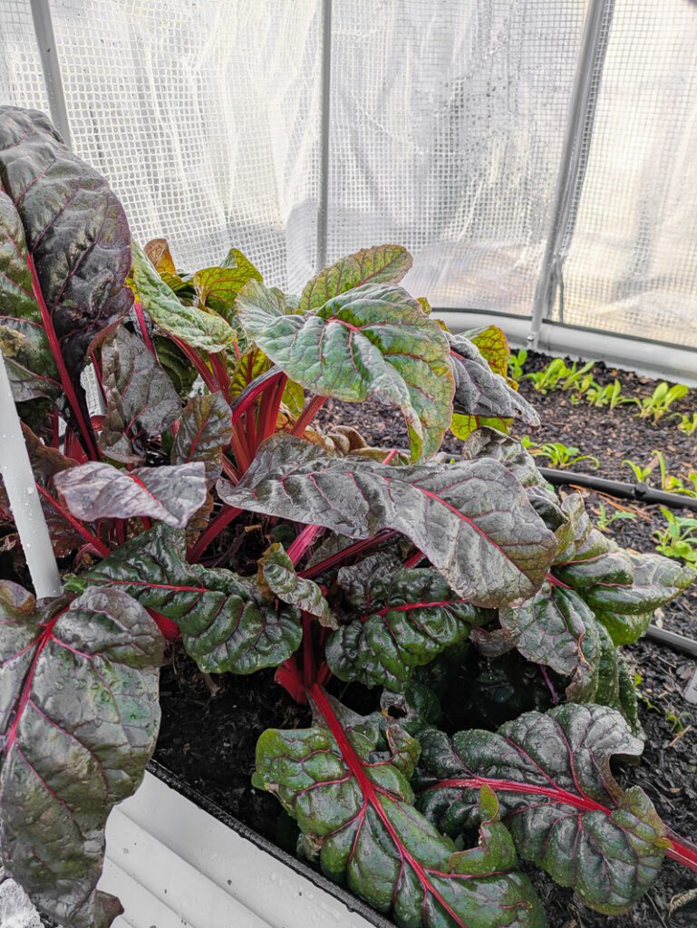 I was able to get an extra month or so of growth out of the greens I had under there—Swiss chard, sorrel, lettuce, arugula, and spinach, mostly.