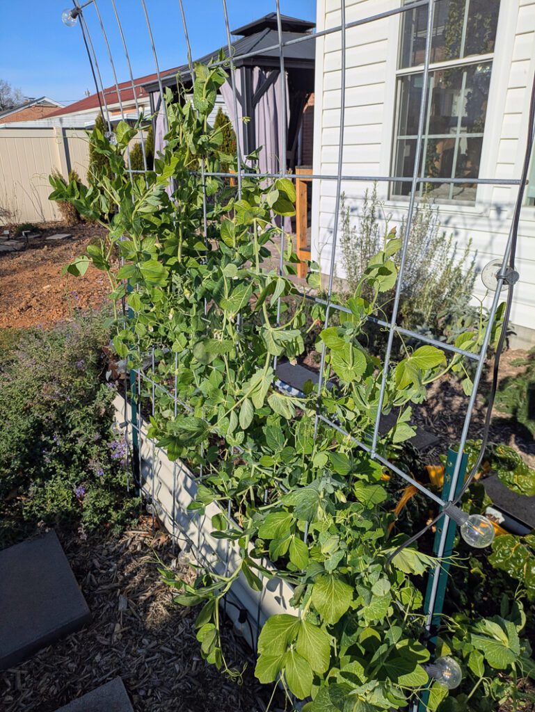 For fall, the two raised beds closest to the house (the ones with the cattle panel trellis) had sugar snap peas, lettuce, kale, green onions, and an assortment of other stuff. We didn’t get many sugar snap peas—they usually aren’t prolific in the fall. But I still try every year!