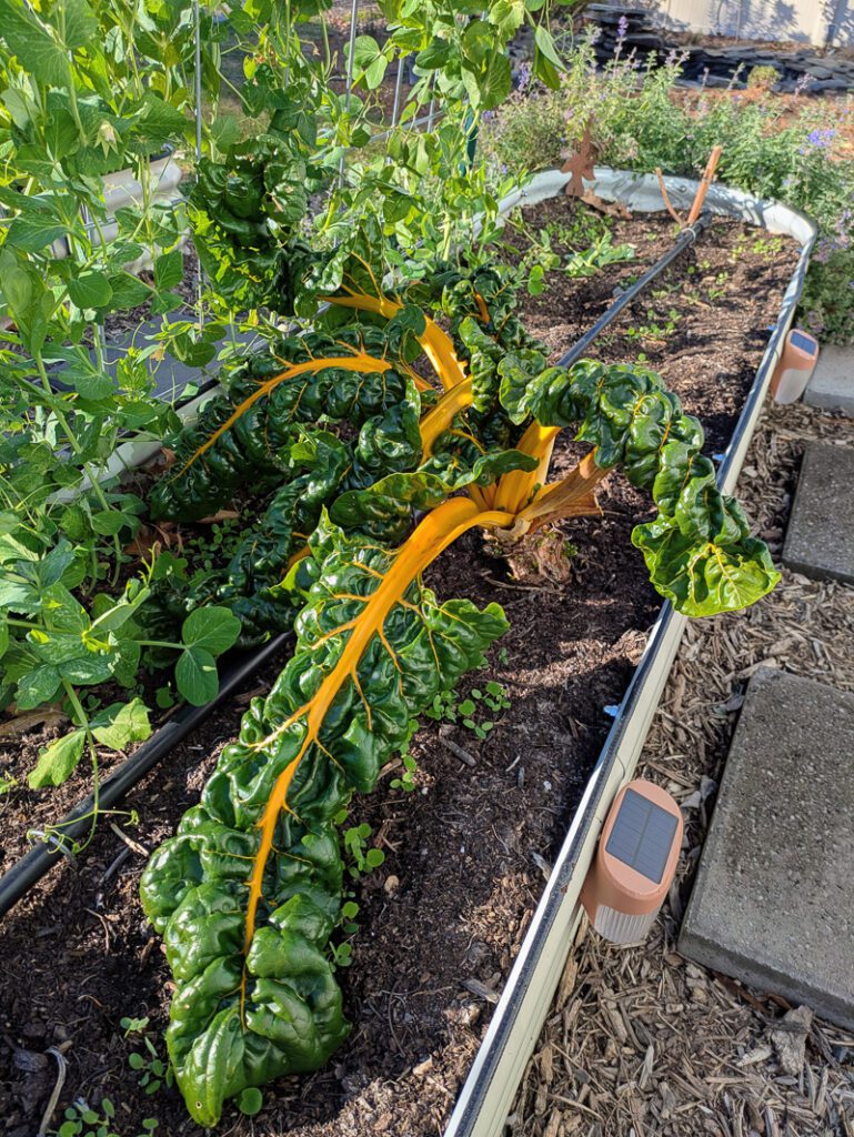 And in the final raised beds, I had an assortment of Brussels sprouts, cabbage, spinach, daikon radishes, kale, and Swiss chard. I will definitely be growing more daikon radishes next year—these things are HUGE and so tasty! Perfect for kimchi!