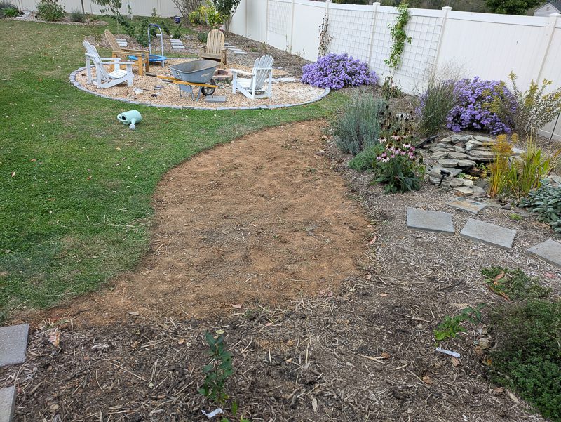 Eventually, the two mulched areas back here will meet, and there won’t be any grass. Just wood chips and paver paths. And probably lots of bindweed, but that’s a problem for a different day…
