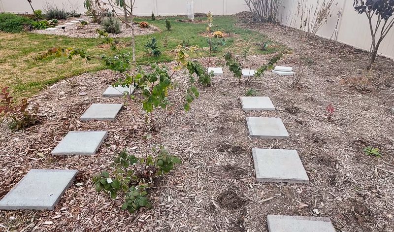 In their place, I planted a self-fertile hardy kiwi vine that we’ll build a large trellis for next. And two goumi berry bushes, which I am super excited about! I need to do a post about why I chose those. The foliage is gorgeous.
