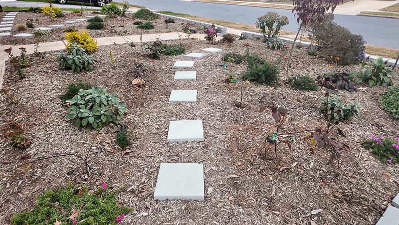 And last up, we have the front yard! Converting this grass to productive gardens was our big project last spring, and we’ve loved having the additional growing space. I’ve been slowly planting more native plants, berry bushes, and other perennials up here as I buy them.