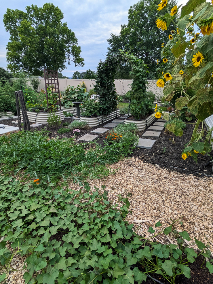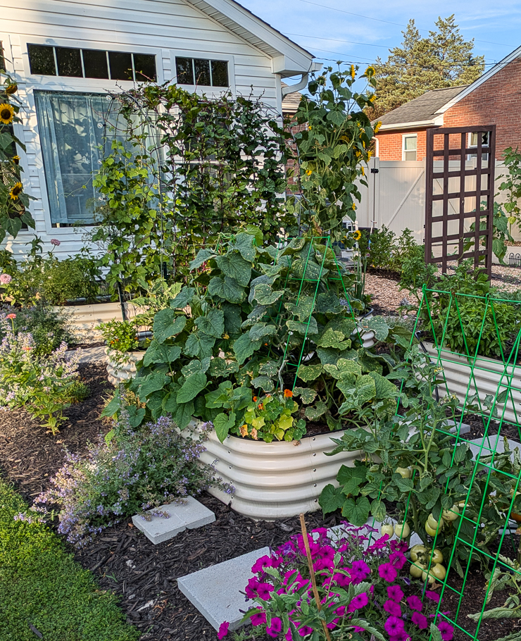 Our entire lot is about one-quarter of an acre. And that includes everything…the house, the driveway, the front and side yards…so we really have to maximize space! If you’re looking to learn more about self-sufficiency and productivity in smaller spaces, this is the website for you. Because we truly believe that you do not need many acres or a farm to grow a seriously impressive amount.